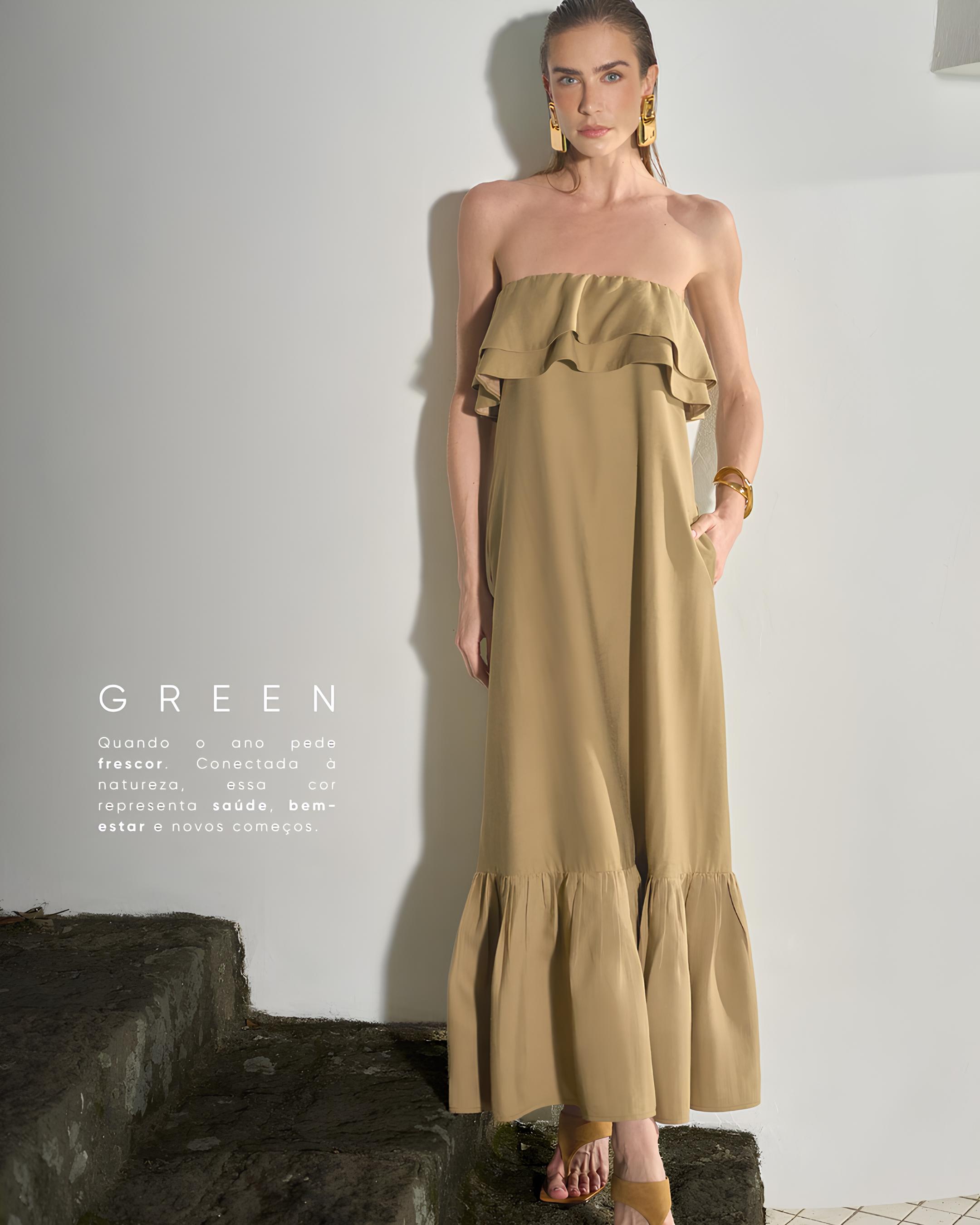 Quando o ano pede frescor, o verde se revela como a escolha perfeita para atravessar a virada com leveza e equilíbrio. Conectada à natureza, essa tonalidade simboliza saúde, bem-estar e novos começos, traduzindo a busca por harmonia, crescimento contínuo e renovação interior. O verde evoca estabilidade e serenidade, ideal para quem deseja iniciar o novo ciclo com propósito, consciência e uma relação mais fluida com o tempo e consigo mesmo.
